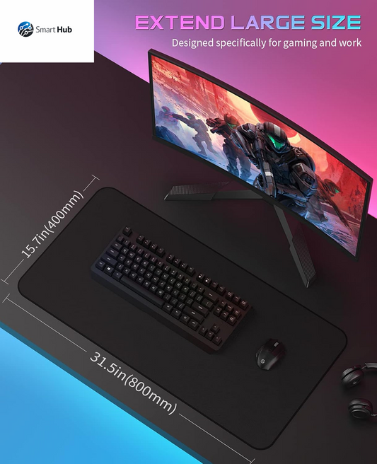 Gaming Mouse Pad, Extended Large Mousepad with Superior Micro-Weave Cloth , Waterproof Keyboard Pad with Stitched Edges, Non-Slip Base, 31.5 X 15.7 Inch, XXL, Black