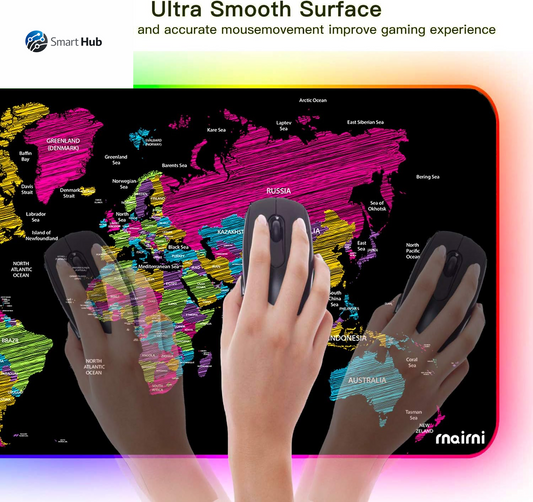 Extended RGB Mouse Pad Mat, Large Office Table Desk Mat Gaming Lighting Led Mousepad for PC Computer Macbook Keyboard Waterproof Anti-Slip Ultra Thin 4Mm - 31.5'' X 15.7' (Black Map)