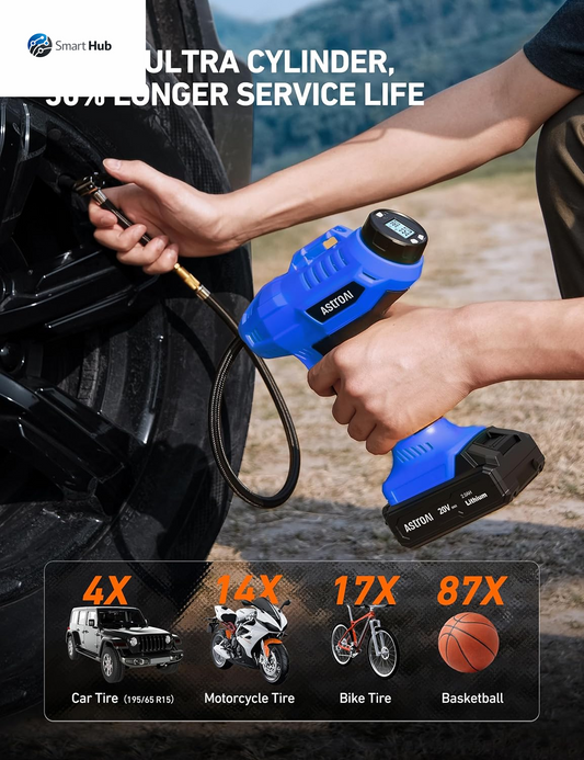 C2 Cordless Tire Inflator Air Compressor 20V Rechargeable Battery Powered 160PSI Portable Handheld Air Pump with 12V Car Power Adapter Digital Pressure Gauge for Cars Motorcycles Blue