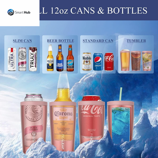 4 in 1 Insulated Slim Can Cooler for 12 OZ Cans and Beer Bottle - Keep 8 Hours Cold, Easy to Hold - Stainless Steel Can Holder, Double Walled Can Insulator for Hard Seltzer and More (Rose Gold)