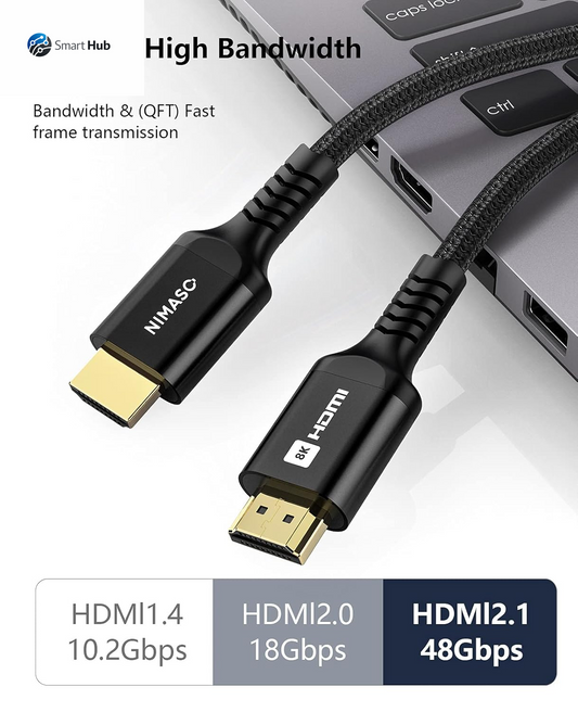 8K HDMI 2.1 Cable 6.6FT 48Gbps, Ultra High Speed HDMI Cable Braided Cord 4K@120Hz 8K@60Hz, Earc, HDCP 2.2 & 2.3, HDR 10 Compatible with Roku Tv/Ps5/Xbox X/Hdtv/Blu-Ray