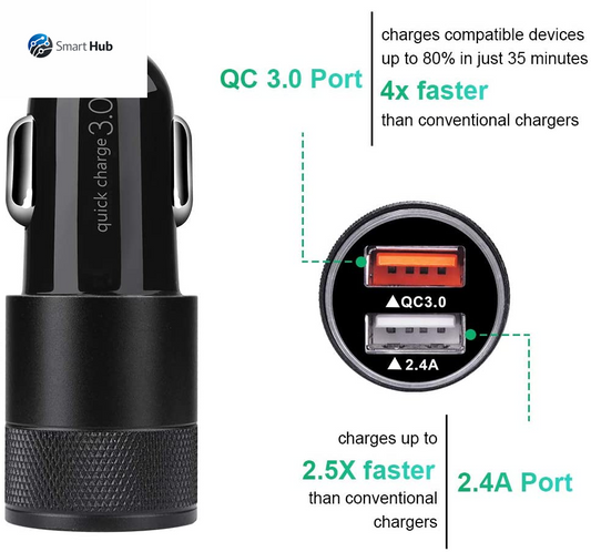 Fast Car Charger, Quick Charging 5.4A/30W Phone USB Adapter Rapid Plug 2 Port Cigarette Lighter Auto Charger Flush Compatible Samsung, Tablet, Iphone, Ipad, LG, Automobile