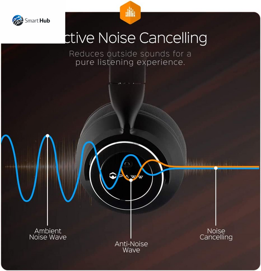 Wavesound 3 Bluetooth 5.0 Headphones Active Noise Cancelling / 16-Hour Battery Life with Precision-Engineered Sound / Foldable Travel & Over-Ear Headphones (Black)